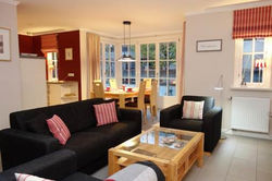 Die Innenausrichtung ist ‘friesisch-modern’. Der schöne Holzfußboden trägt zur angenehmen und äußerst gemütlichen Atmosphäre bei.